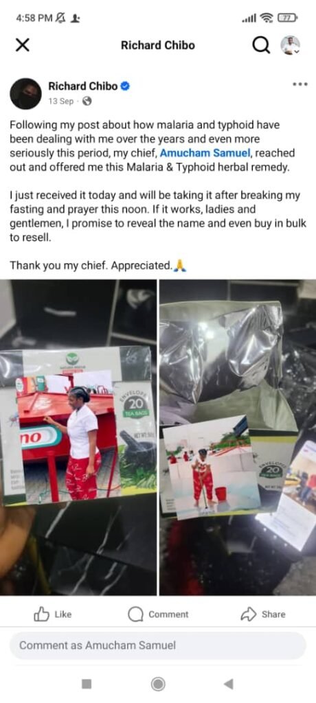 Having Gotten Permission From Mr. Richard To Use This Screen Shots, The Essence Is To Further Prove To You That The Product Is Effective And More Importantly , To HELP More Nigerians Prevent The Constant Treatment Of Malaria And Typhoid….